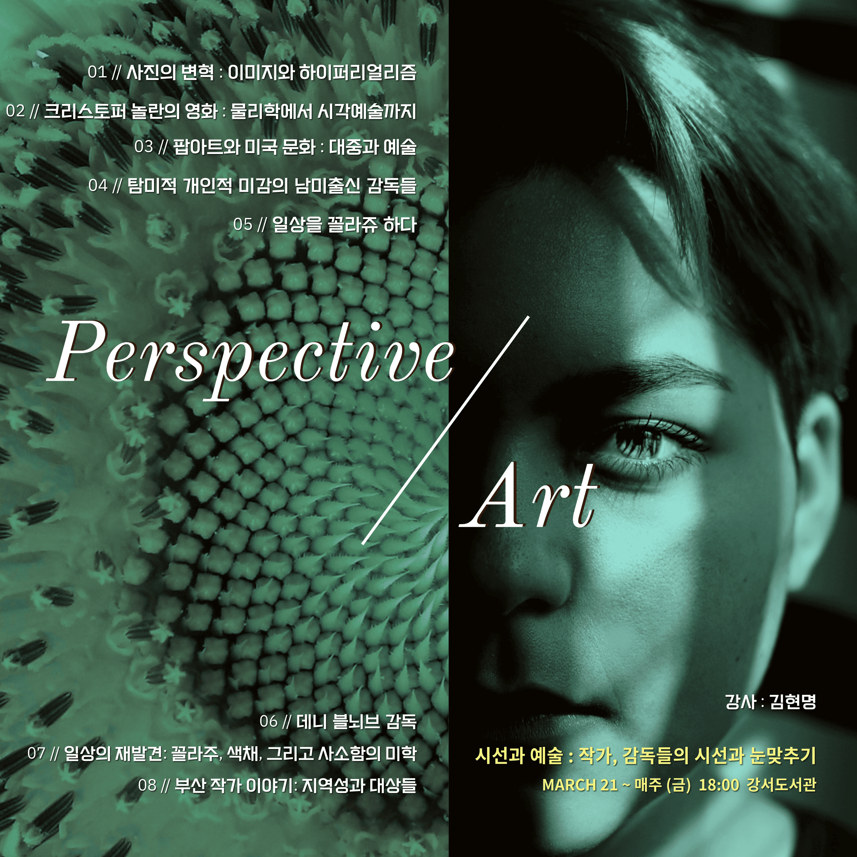 우리의 주변에서 열린 예술의 얼굴, 협업 프로젝트, 그리고 강의 콘텐츠와 일정을 담은 아카이브입니다.