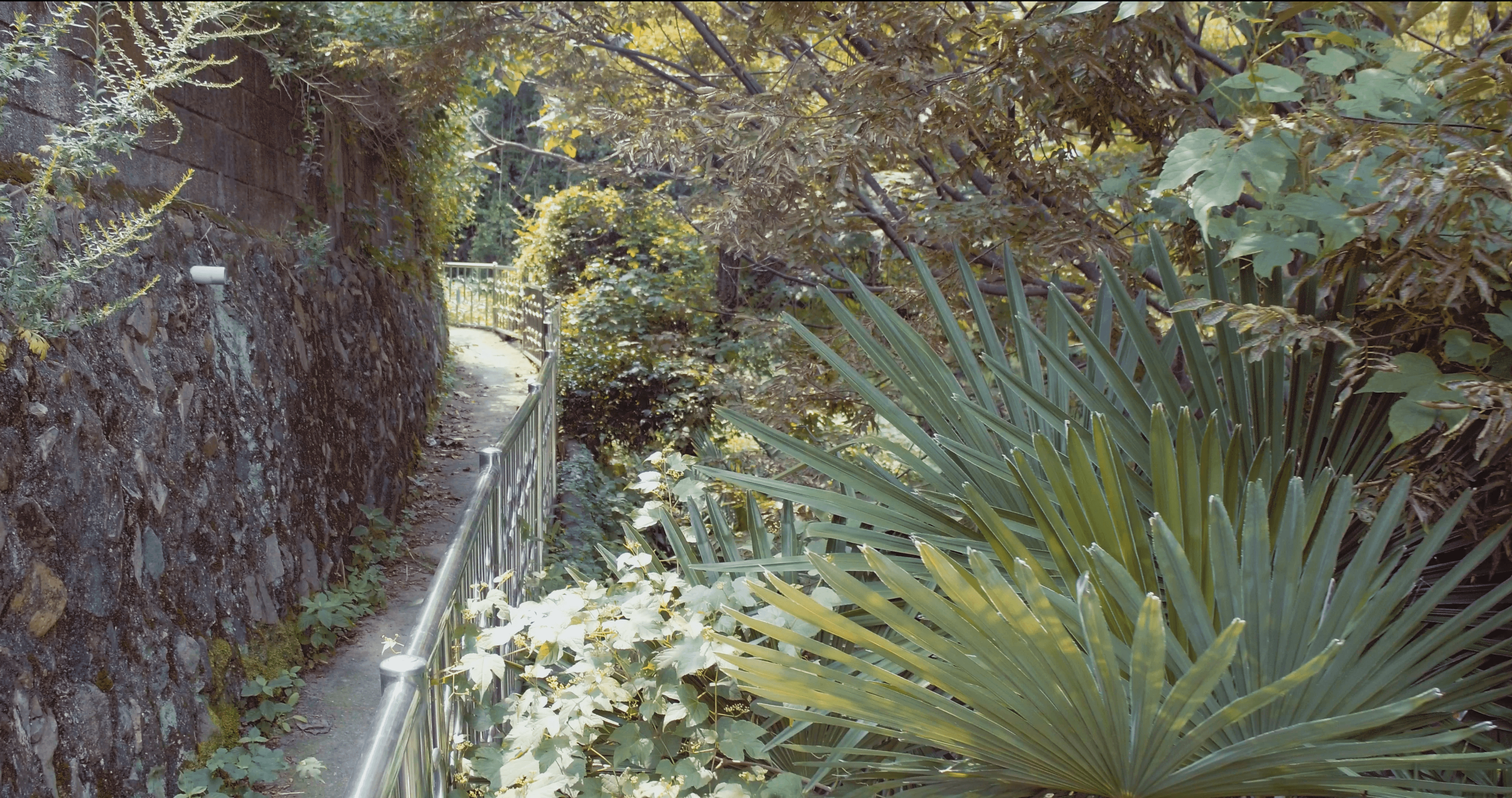 산책이 진행됨에 따라 카메라는 더 가까이 다가가 이러한 공간의 더 내밀하고 종종 간과되는 세부 사항을 파고 든다. 좁은 골목길 이미지들은 특히 설득력이 있다. 이것들은 웅장한 대로가 아니라 공동체의 모세혈관과 같아서, 풍화된 벽, 콘크리트 구획에 생명을 불어넣는 화분의 실용적인 배치, 그리고 빛과 그림자의 미묘한 상호작용을 드러내고 있다. 바래고 얼룩진 골함석 지붕의 클로즈업은 시간의 흐름과 이 주거지들의 물질적 현실에 대해 많은 것을 말해 준다. 그것은 인내의 질감이며 수많은 계절과 이야기의 조용한 증인이다. 토속적이고 오래된 것에 대한 이러한 집중은 '지난한 일상의 기억들' 을 탐구하려는 작가의 의도와 일치하며, 결백한 것들이 아니라 진정으로 살아온 흔적이 있는 것에서 아름다움과 의미를 찾게 한다.